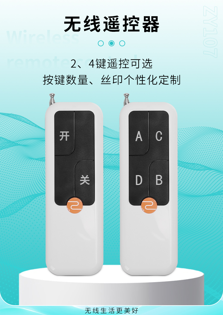 ZY107是一款大功率無(wú)線(xiàn)遙控器,具有可靠性高、頻率穩(wěn)定、穿透能力強(qiáng)、遠(yuǎn)距離等特點(diǎn);