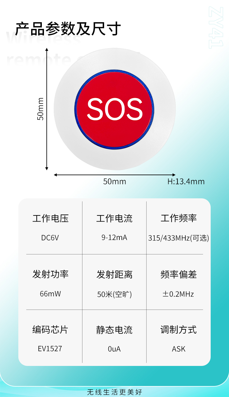 ZY41是一款單鍵小功率無線遙控器外觀精巧。