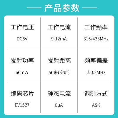 遙控車庫門、遙控電源開關(guān)、無線遙控車位鎖、遙控門鎖、遙控點(diǎn)動卷簾門窗、節(jié)能燈光、家庭防盜系統(tǒng)、工業(yè)或家庭遙控控制等。